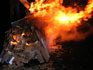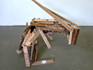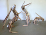 Nadine Röthers Arbeiten leben gefährlich. Die aus Sperrholz zusammen getackerten Hasen sind über und über mit einem Fell aus zwei Worten bestempelt, der Anweisung "burn down", welcher Nadine schon Folge leistete: die Offenbacher Feuerwehr wurde informiert, ein 3-Meter-Hase mit Benzin übergossen und angezündet schließlich gab es noch ein Foto zur Erinnerung, fertig. Dieses Hasenobjekt hatte sich überlebt und eigentlich jedes nachfolgende: seit dieser Aktion findet sich die Drohung "burn down" auf jedem Quadratzentimeter ihrer Hasen.